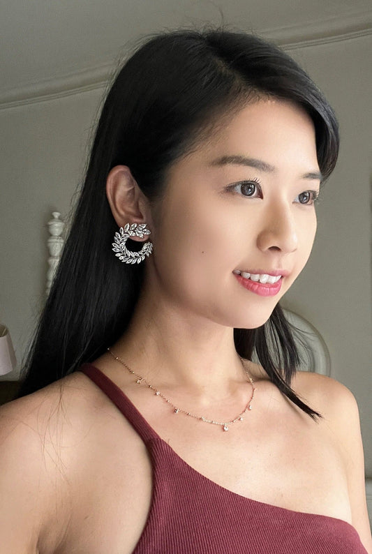 Stud Earrings for Brides w. Large Floral Wreath Cubic Zirconia | Wedding & Prom