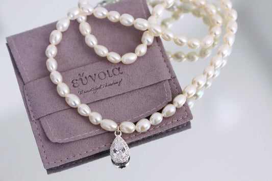 Pearl Chain with Zirconia Gem Pendant | Wedding & Prom