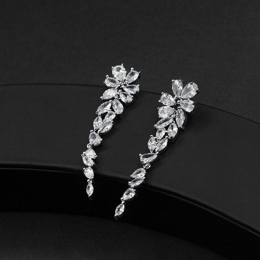 Vera Bridal Earrings w. Sparkly Long Vine Cubic Zirconia | Wedding & Prom
