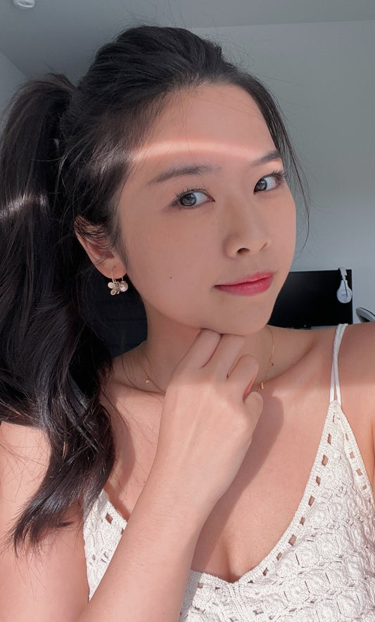 Daisy 14K Gold Plated Earrings w. Butterfly Moon Dangling Pearl | Minimalist Chic