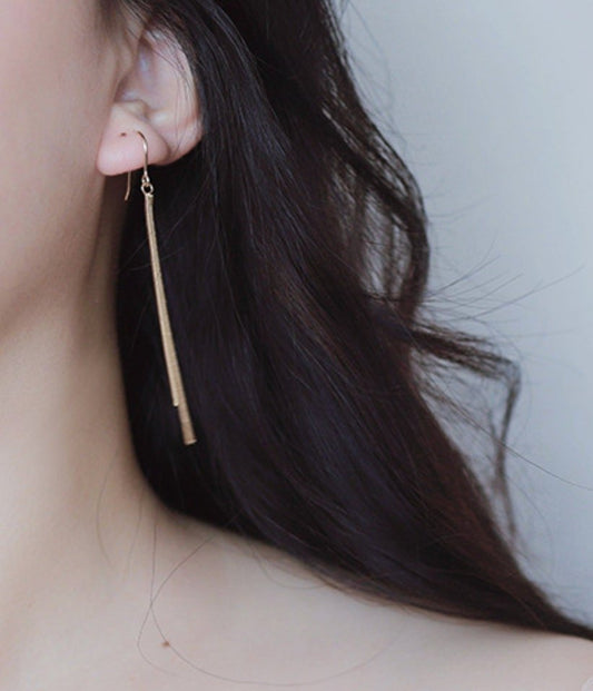 Dangling 14k Gold Fill Earrings w. Long String Tassel | Minimalist Chic
