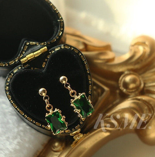 Elise 14K Gold Emerald Pendant Earrings, Green Gems Jewels | Vintage Inspired