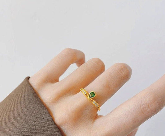 Emerald Pendant Ring, Gold Plated S925 Silver | Vintage Inspired