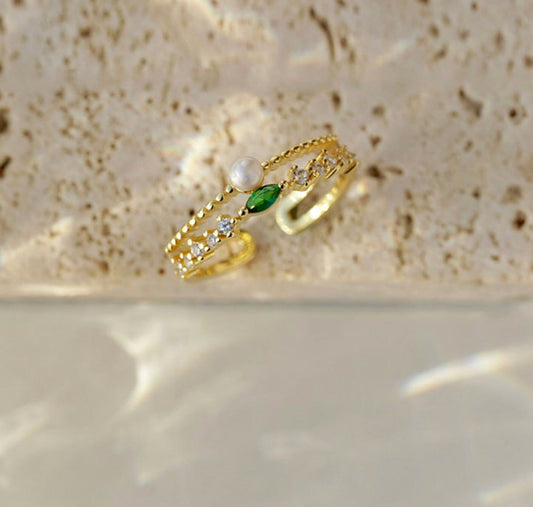 Evelyn S925 Silver Emerald Pendant Ring w. Pearl Gem Jewel | Vintage Inspired