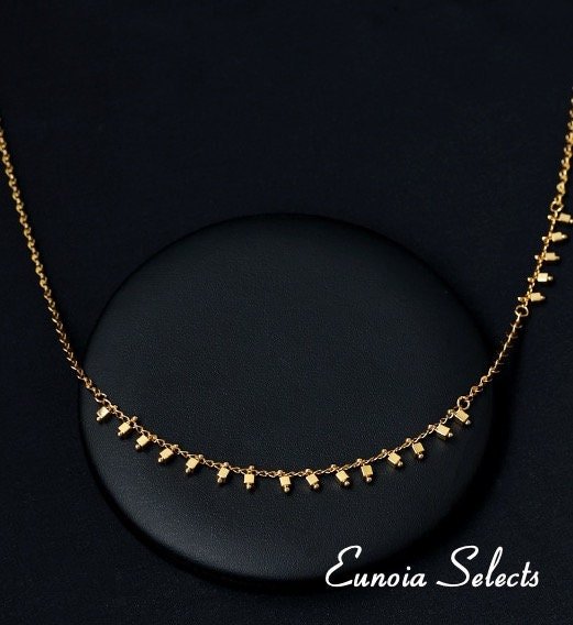 Kaia 18K Gold Vermeil Necklace w. Dangle Beads, French Style Chain | Classy Modern