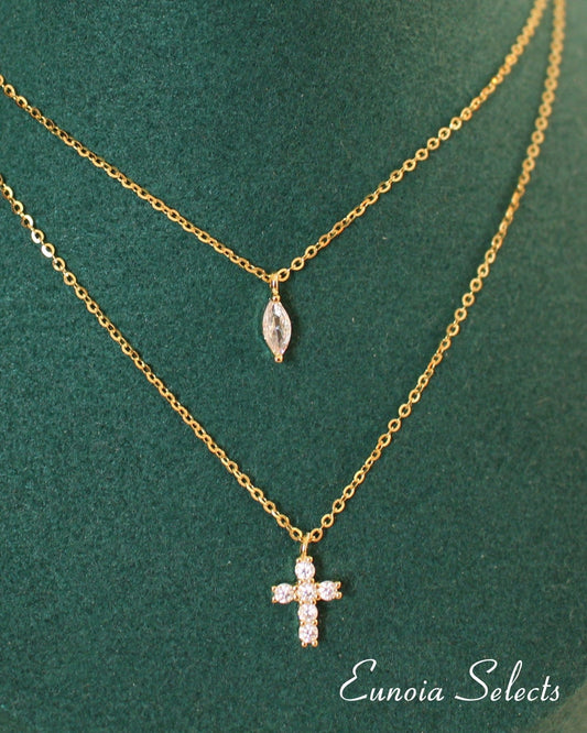 Cross Pendant Necklace + S925 Silver Gold Plated Layering Chain