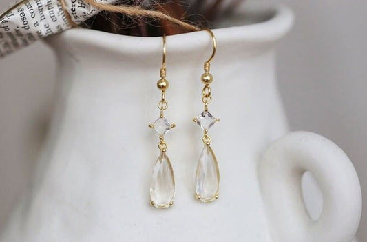 Emerie S925 Silver Emerald Green Dangle Earrings, Teardrop Gems | Vintage Inspired