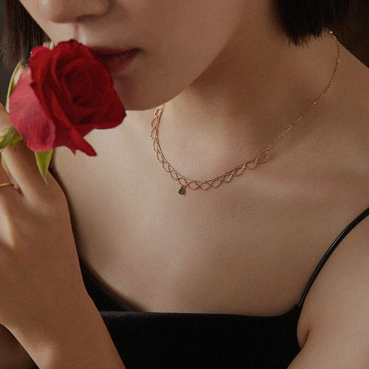 Grace S925 Silver Victorian Emerald Gold Chocker Necklace | Vintage Inspired