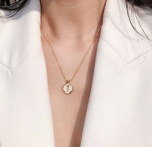 J’adore 18k Gold Pearl Medallion Necklace Set, White Tulip & Rose Design | Minimalist Chic