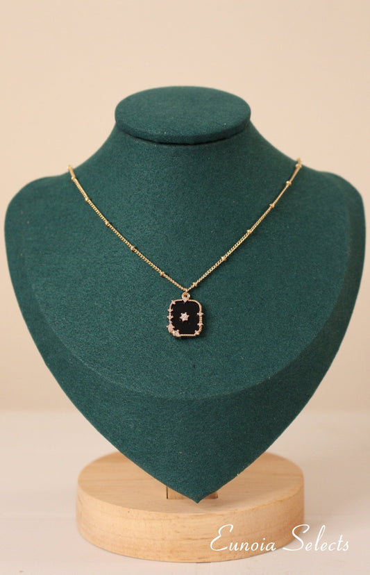 Maya Victorian Black Heart Pendant Necklace, 14k Gold Chain + Black Carnelian