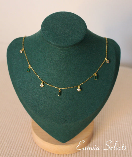 Tessa Emerald Green Necklace Dainty Dangle Charms + 18K Gold Chain | May BirthStone