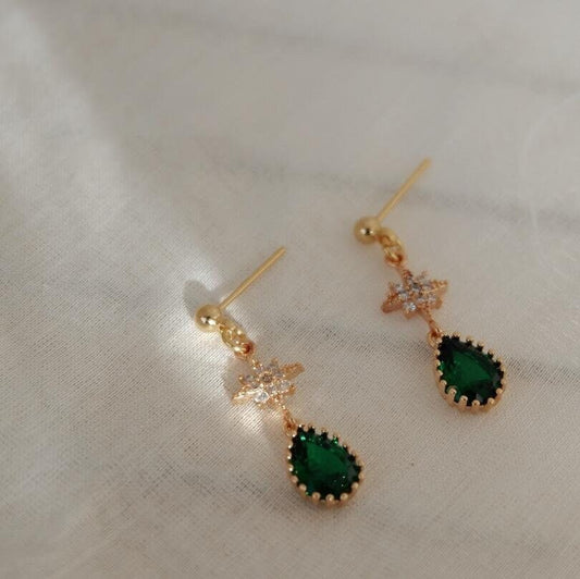 Vienna S925 Silver Earrings w. Emerald Green & Shining Star Gems | Vintage Inspired