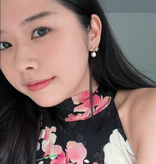 Vivienne S925 Silver Earrings w. Golden Bow & Pearl | Vintage Inspired